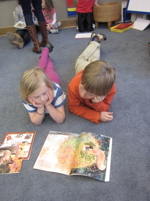 Last week, right after the honoring fair wrapped up, the Herons went down to our Dove bird buddies to help with their initial personal project research. The Herons helped their Dove buddy record questions of wonder and then they read information books together.