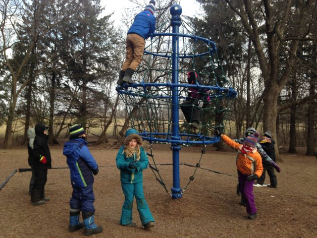 Brrrrr. Wednesday felt really cold. After a half hour of reading independently outside, I told the students a story from icelandic novelist, Halldor Laxness. A sheep farmer loses a sheep and has to go searching for it in late autumn. He is forced to sleep outside and goes to a rock used by hunters to keep warm on winter nights. How do they keep warm? They sleep on the rock and when they wake up shivering, they push the rock around in circles until they are warm enough to sleep again. Then they go back to sleep on the rock and, when they wake up shivering, they push the rock around again. "To the Albero!" the Herons yelled. We went and pushed the albero around but it did little to keep us warm. We weren't able to do any writing outside in the cold and I am thinking through what the next three months might look like for us in Forest School. While I'm still very committed to being outside on Wednesday, I am also cognizant of the need to balance our "outdoor education" (learning about the environment) with "education outdoors" (doing our regular work, just outside). We may shift our woods craft work to the morning and, when necessary do our writing and reflection inside (and mitten free) in the afternoon.